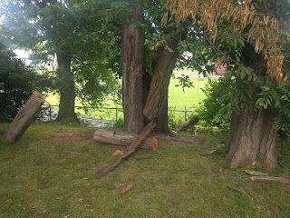 Back in Oskaloosa late this afternoon, had a tree that had tipped over and was caught in another tree. As Brandi said, "that's a widow maker." I cut through it with a chain saw, knowing that it would remain stuck in the tree beside it, but at least 1 end would be free.